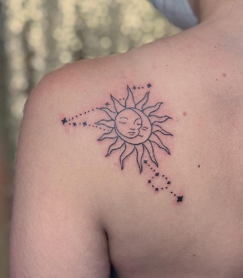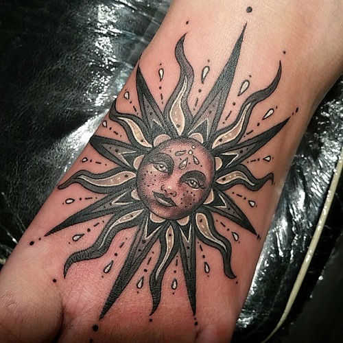 The sun is the most basic type of celestial sun tattoo and is also very common among people. It is believed that these tattoos do have some meaning. The sun tattoo means a new life, courage, knowledge and a masculine symbol with powers.