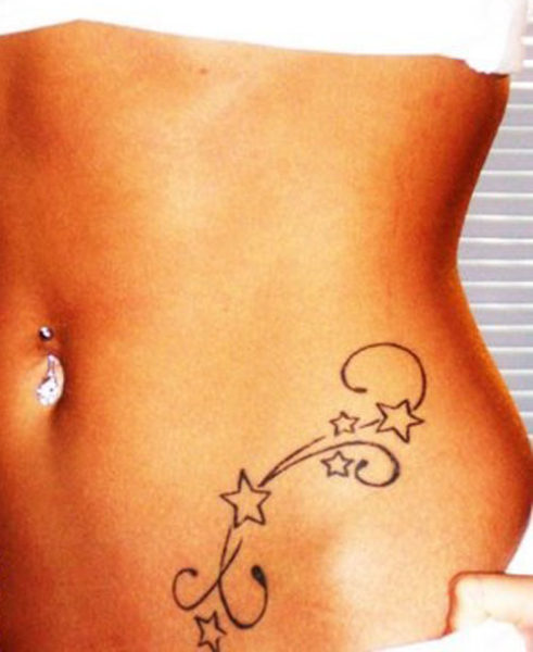 Just stars look pretty but they can be made to look even better by adding embellishments like spiral patterns to them. These tattoo designs look excellent inked upon your waist or lower back. Like all other designs they look great in black as well as other colors.