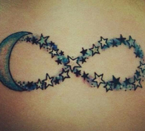 The stars lie beyond are grasp, only their light reaching us through infinite. Thus what better objects to represent infinite than the stars themselves? A moon and star tattoo shaped in the symbol of infinite is thus beautiful to look at and very meaningful at the same time. It is one of the best and simple stars tattoos for girls.