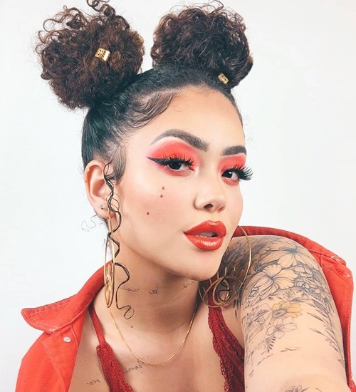 We can’t leave out without showing one of the best curly hairstyles for girls in this modern era. This curly hairstyle is all about giving a messy and edgy look in a double bun. The perfect style oozes out a glam appearance and hot vibes instantly without any effort. It is perfect for spicing up any party gatherings or teaming up with a bold outfit.