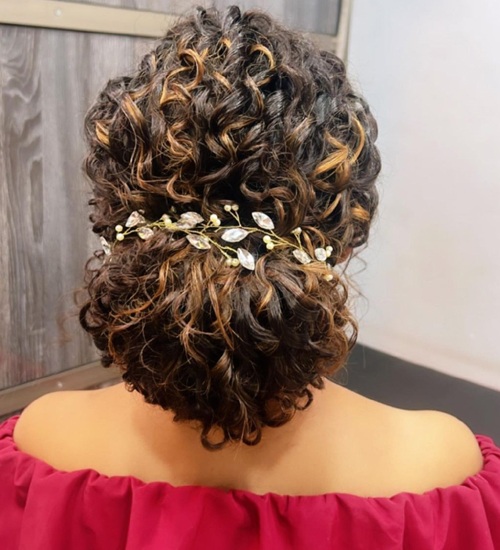 If you have naturally curly hair, you can try out this best and easy hairstyle for girls and women. The beautiful look is nothing more than a hairdo added with hair accessories to overall enhance the style statement. The natural curls define and accentuate your glam quotient and instantly deliver a feminine, elegant and fashionista feel. Do you agree?