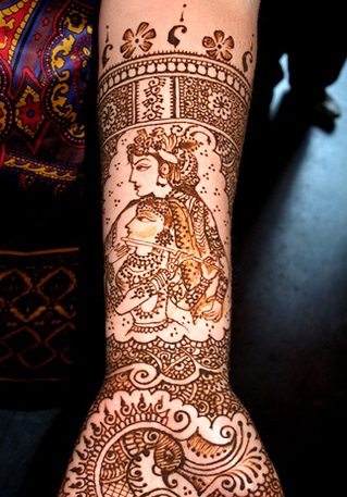 Mehendi is an essential part of Indian culture. These temporary mehndi tattoos are applied to women for all occasions. Indian weddings are noisy, colourful family get-togethers, which wouldn’t be complete without certain things – the religious ceremonies, the feast for the guests, and the beautiful Mehandi designs adorning the hands and feet of the bride and her friends. The most famous design for Indian Mehandi is a big dot or figure in the middle of the palm, with fingertips colored completely. Mehandi is the ancient Indian body art reinventing itself as a modern fashion accessory.