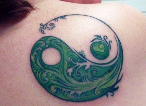 If you want your Yin Yang tattoo to look outstanding, presentable and spectacular, a great idea would be the floral Yin Yang tattoo design. It is green in colour, is styled well and contains element of creativity.