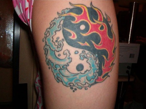 Yin Yang tattoos is really cool for those who would like to show their evil as well as angelic side. A majestic looking fire and water Yin Yang tattoos is the perfect choice here. It has been styled well and is very fashionable and trendy to look at.