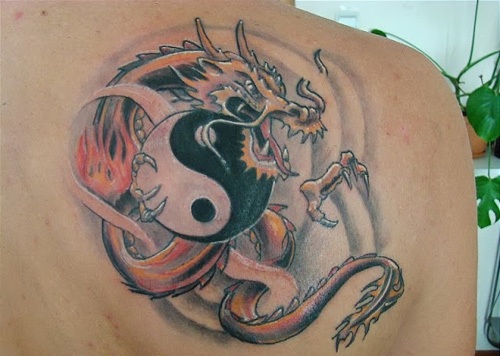 Dragons are a very important part of the Chinese culture and history. They are significantly remembered for their nature, wrath and powerful status. A tattoo that shows the image of an angry dragon clawing the Yin Yang symbol looks innovative. The presence of flames behind the dragon makes it all the more attractive.