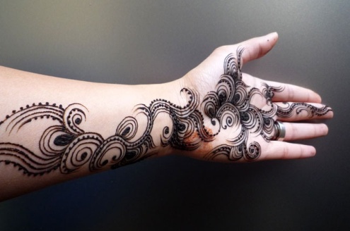 This is a latest and trending design which is beyond imagination. This mehandi design is very simple, bold and elegant. It is designed only with spirals and the tips and edges are highlighted to give a stunning look. The same pattern design is used from starting to tip of the middle finger the other fingers are left empty to make the design look more simple and outstanding.