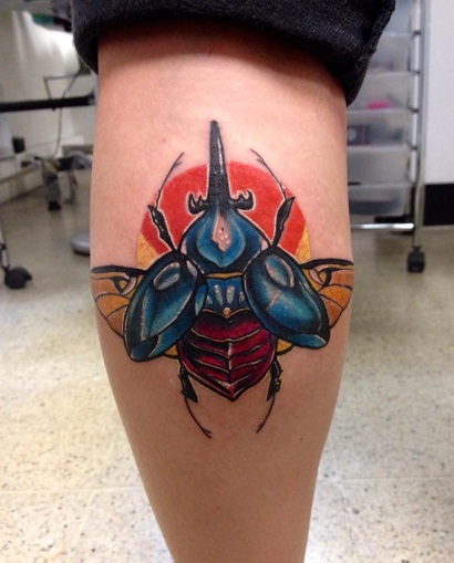 The beetle tattoo design can be designed in diversified as well. An array of colours is being imposed on the design to make it grander. The blue coloured beetle symbolizes freedom and is pretty sensitive by heart. So a person having these qualities can design this beetle design on their calf and appear distinct from others.