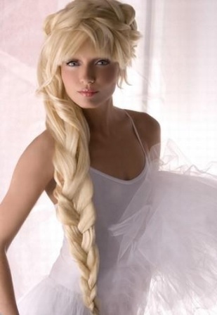 This is an absolutely classic Barbie hairstyle. You must have seen this hairstyle on your own Barbie doll. You may sport this hairstyle too provided you have long and thick hair. You may ask the hairstylist to give you thick front bangs. Additionally use a big curling iron and medium hold hairspray to give you voluminous curls. Mess up the curls and back tease them a bit to get this hairstyle look.
