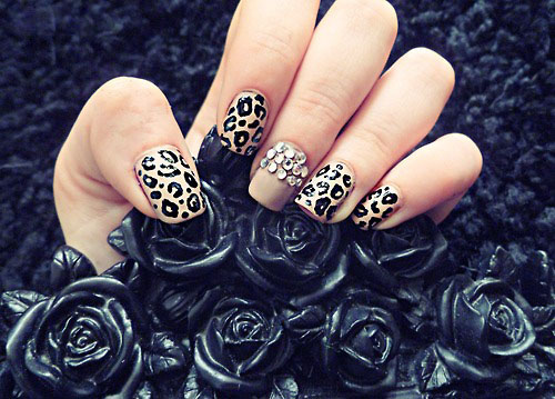 Animal print is currently in huge demand. Women have really liked them and the idea has started to reflect in their shoes, clothes accessories and even nail art. Getting your nails done in animal print style with some nice rhinestones studded on them looks classy and very fashionable.
