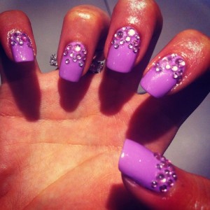 You can always use some solid brick colours for your Rhinestone nail art. The best example we have here is purple. The colour is very attractive although the shiny and glimmering rhinestones take the cake. They are very glossy and create the perfect look you need before you for a good night out. This is the best Rhinestone nail art ideas.