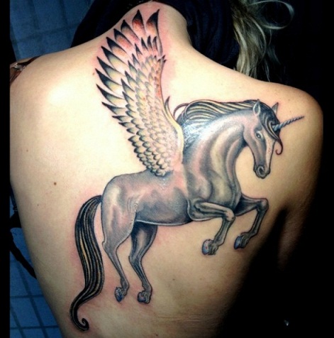 A tattoo is being considered to the best way to convey your thoughts and ideology, similarly, a unicorn with wings depicts freedom in every aspect of life. The wearer tattooing this design on his back wants to display that he wants freedom from everything.