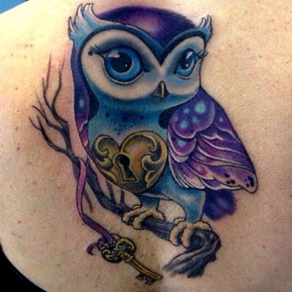 Owls have been a rare choice for getting inked; however, it would be an excellent choice for an owl with a lock-in purple tattoo ink. The design represents values like femininity, fertility, wisdom, beauty, eternal love, etc.