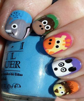 You can easily recreate this animal print nail art design if you have a good hand for painting and drawing. Give different shapes to your nails like a panda bear, teddy bear, cat faces, bunny rabbit faces, caterpillar faces, frogs, butterflies, giraffe, butterflies, etc.