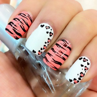 This is a mix of zebra and tiny leopard print nail design. Try out this design with the help of your nail art brush and toothpicks. This is a very eye-catching nail art design. You must try this one out!