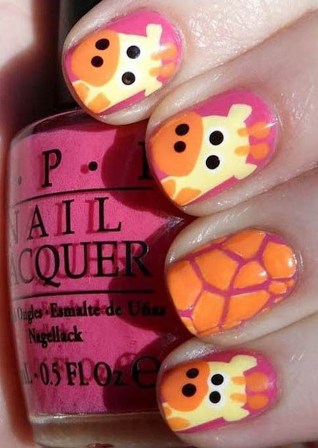 If you have good hands at painting then you can try making this fun animal nail art designs using acrylic colours or nail polishes of various colours.