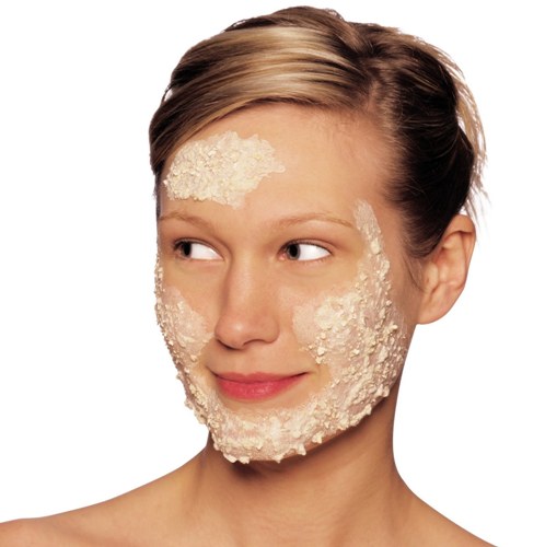 Use any fruit based scrub, such as mashed strawberry and gently rub over your face, with your fingertips, in circular motion. In case of dry skin, make a scrub missing oatmeal and honey. Apply in the same way and rinse off with lukewarm water.