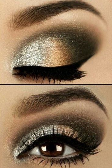 A party eye makeup is always very glittery. If you want mauve or a flesh tint then you can use some loose glitters taking those on your fingertips and then you can loosely apply those. You can also buy shimmery shades but this eye look is very glittery. For this, you will have to have at least 2 shades of glittery shadows like golden and silver. You will also need a flesh tint and a black eye shadow to create a Smokey effect. The steps are explained below and you can follow these.