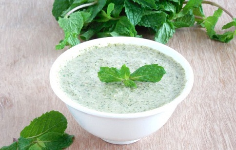 Mix well one tablespoon of buttermilk, 1 tablespoon of yoghurt, and a few mints leave into a fine paste.
