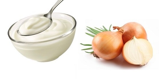 Yoghurt and onion juice together fight scalp infections and moisturise the scalp, thus reducing hair loss. Yoghurt is packed with protein and vitamin B5, which increases the blood flow to your scalp and hair growth.