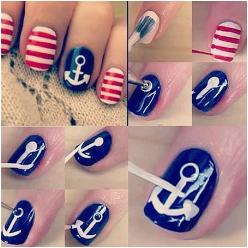 Nautical nails are the new trend this season. This nail art uses the patterns of the sea like anchor and red stripes. Nautical nails have multiple patterns to be created on alternate nails. It takes time to achieve perfection, but you can start off by following these simple steps: