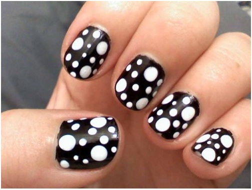 12. Monochrome Polka Dots Nail Art Tutorial: