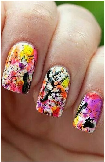 This is one of the simple and easy nail art at home that can be created with a set of nail polish colors. There is absolutely no need of any skill or art to perform this nail art. All you need is a straw to blow your nail polish randomly on the nails. Check out the procedure below:
