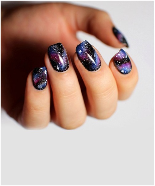 This amazing nail paint art at home is certainly out of the world. They are extremely beautiful and involves careful sponging technique to achieve the galaxy like effect. You need good amount of practice the layer the colors on top of each other for a neat finish.