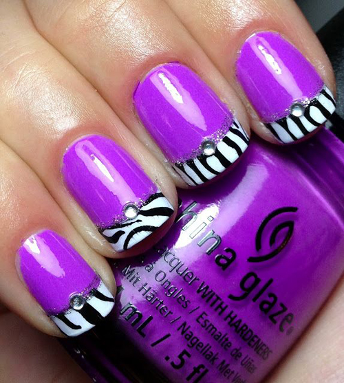Violet with Zebra Patterned French Tip Nail Art Designs: