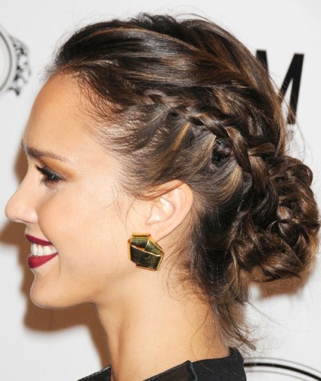 In the diagonal up do give your hair a new and fulfilling look with a diagonal French braid that ends up till the middle half of your head in the back. From one corner of your temple, section a chunk of hair and start braiding it diagonally as you go further back. Halfway in the middle stop your braid and gather the rest of the hair in a messy updo.