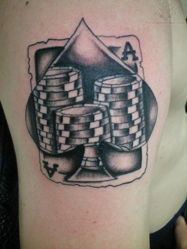 Aces and gambling sound together very well indeed, which is why tattoo designs combined poker chip used during gambling with tattoo design. This tattoo design suits well with a dark ink and drawn along the arm.