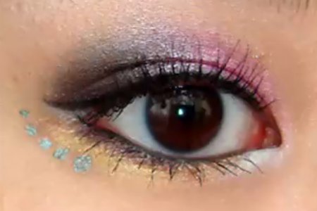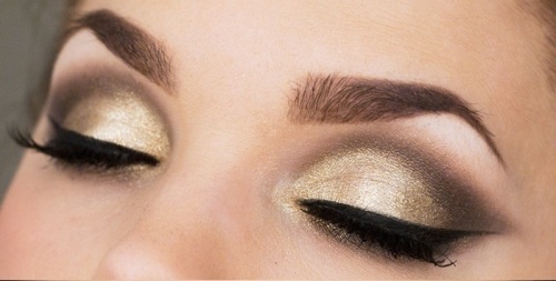 The Golden eye makeup is a stunner for those with black eyes. It uses golden glitter and a well defined line created with the help of an liner. Make sure your eye brow has been threaded very well and your face makeup has been done properly. It will enhance your whole appearance.