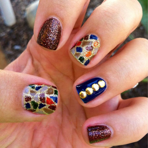 The creative eye makeup uses a great combination of five colours. Some nice grey spots below the eye also look quite innovative and appealing. It also requires a good quality kajal and liner to prevent smudging.