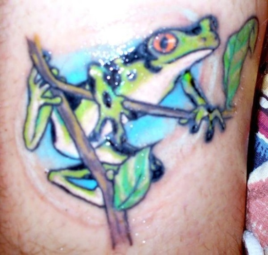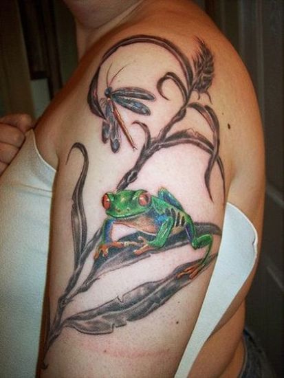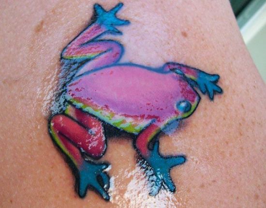 If you want a realistic and 3D effect frog tattoo with colours, you should try something like this. This is one of the best 3D frog tattoo designs for women.