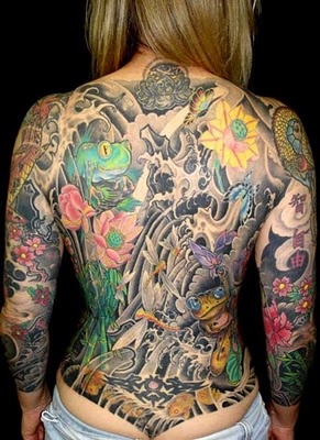 This is a frog on branch design. You can also do these types of colourful designs quite easily. These are easy to sport and also look quite realistic. It would help if you took the advice of a professional artist as to the colour and the size of the pattern.