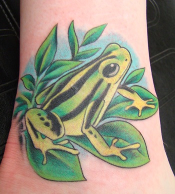 This is a girl-type frog tattoo, and you can do these easily. This is done on the side of the foot. If you want, you can also do these in other positions. This is one of the cute frog tattoos for men.