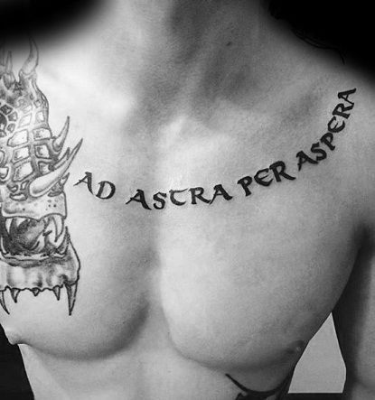 The Latin scrolls and scripts are the Latin script tattoo with special quotes written with the script and royal seal style. Men mostly wear these on the chest or shoulder.