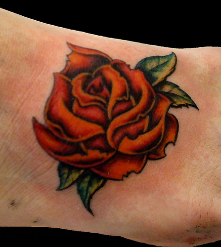 This is a beauteous and alluring traditional tattoo design for females as the rose symbolizes balance, hope and promise to begin a new life. The image has been designed differently; the curves on the petals and the lighter and darker shades of red on the flower lend a stunning appearance to the rose design and even to the wearer’s calf.