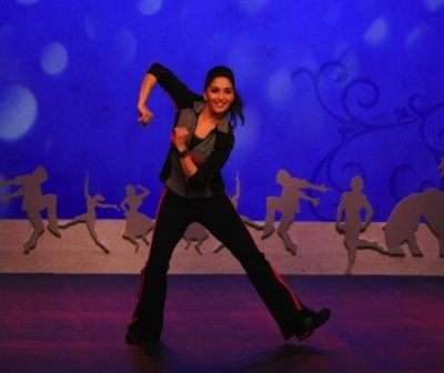 Madhuri was clicked as she prepares her dance for her performance at an award function. She is wearing pink ‘salwar’ with designs of white on it. Her ‘dupatta’ is tied around her waist and she seems to pose in between her dance practise. In this pic she wears no makeup on her face.