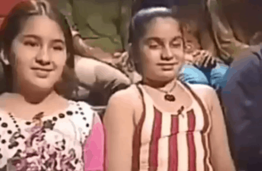 Sara looks all tall and grown up in this picture, which could have been taken around 11-12 years of age. She poses with her childhood friend and her smile reveals her “braces”.