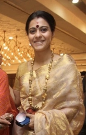 A picture clicked while Kajol was talking over the phone in Jaipur airport. She was wearing a loose sand colour synthetic shirt tucked in a pair of blue jeans. She has a hairband covering her hair and a couple of black sunglasses. Her left hand was occupied with a red bag.