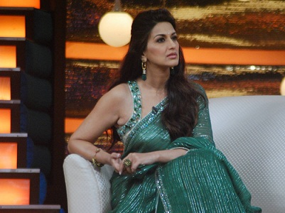 Besides films, Sonali also played big roles in some reality shows. This is a picture from one of those moments. With her cropped hairstyle and minimal makeup face, she looked pretty attractive that day.