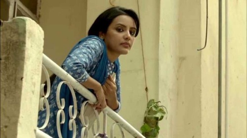 Taken from one of her movie stills, here we see the beauty herself leaning on against a balcony railing looking calm and collected. From the picture we can make out she doesn’t have makeup on herself.