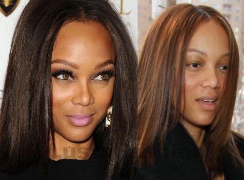 We admit the stars look pretty different without their usual made-up self. We are so used to seeing these stars with their makeup intact that we often feel surprised to see them without one. However, Tyra is beautiful even with her slight imperfections as she proudly wore her spots and smooth skin and strutted about.