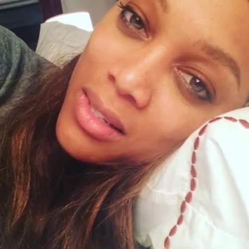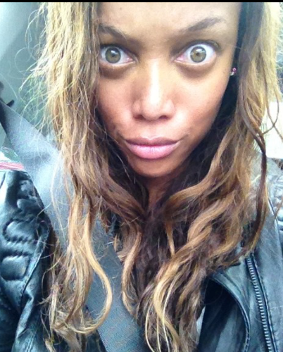 Tyra Banks looked funny in this cute selfie of her. She has no makeup and confidently revealed her patchy, uneven skin. She also showed off her sunken eyes and dark circles in this picture. Her eyeballs seem to pop out at times, and her duck lips are sure to give her fans a little amusement.