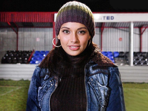 Here we see a very elegant and sophisticated image of Bipasha. Dressed in black, she is out in the crowd enjoying herself. She seems to acknowledge the presence of the paparazzi and really likes being on the spotlight. Her hair looks bright and voluminous and the quality of her skin is so shiny and radiant. Clearly, she has done a great job without any makeup.