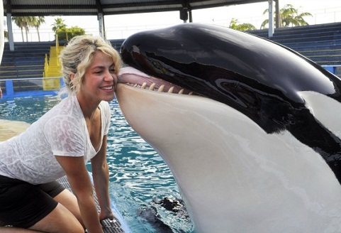 This picture of Shakira was clicked while she decided to spend her precious morning at the aquarium. Here, she is seen having fun with the dolphins. That lucky sea creature gets a taste of her natural beauty. This singer can make herself look attractive by wearing anything she wants, and makeup is not a part of that.