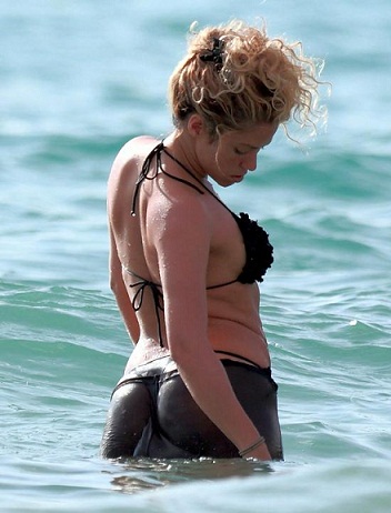 Shakira was spotted at the beach without wearing any makeup. Her God-gifted physique and naturally beautiful looks are an advantage. In this picture, she looks pretty relaxed as she enjoys her time at the beach.