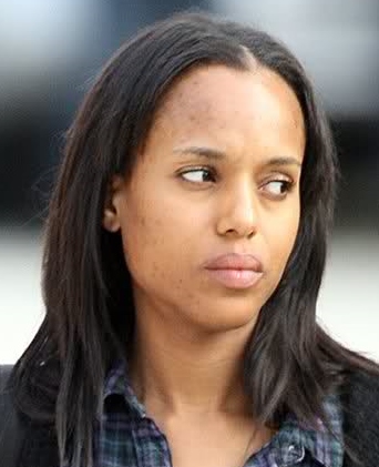 Much like us, even the stars have a bad hair day or a zit on the forehead. However, Kerry Washington can pull off the look with much ease. Walking around in a checkered shirt and soft mid parted hair, the Scandal star sported some flawless skin with cute baby freckles on the side.