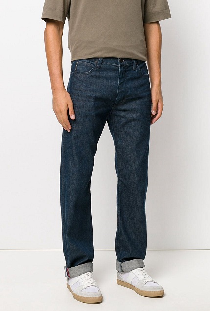 This relaxed denim from Armani is one of the most popular choice among buyers. The dark shaded denim is quite versatile and can be paired with almost any colored t-shirt or shirt. It comes in a high raised waist with a classic five pocket style. The uniform shading of this denim makes it look elegant.