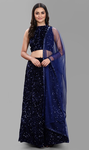 - Sequins work is the most famous embellished work done on the velvet lehenga.